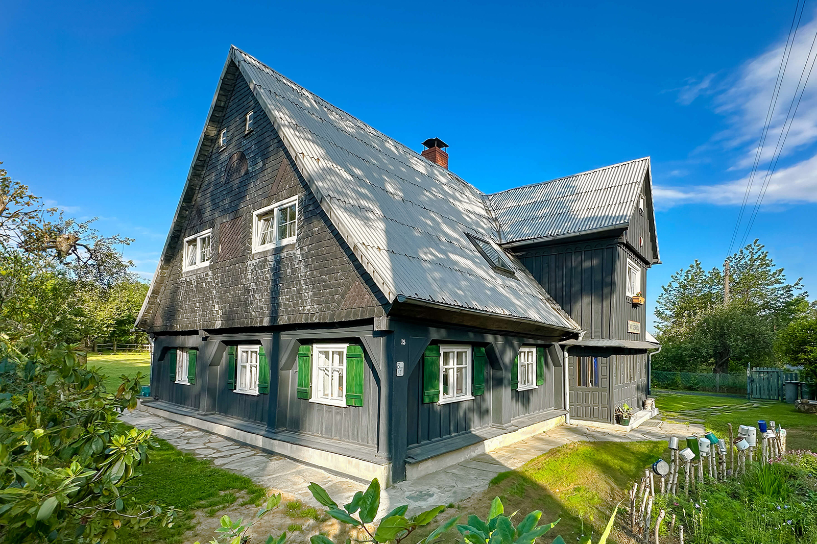 Nocleg w ok. 250‑letnim domu przysłupowym, z duszą i historią. Tutaj niegdyś mieszkali i pracowali tkacze. Dom skrzypi, oddycha i ma swoisty urok, przytulną aurę. Autentyczny, nie wystylizowany.